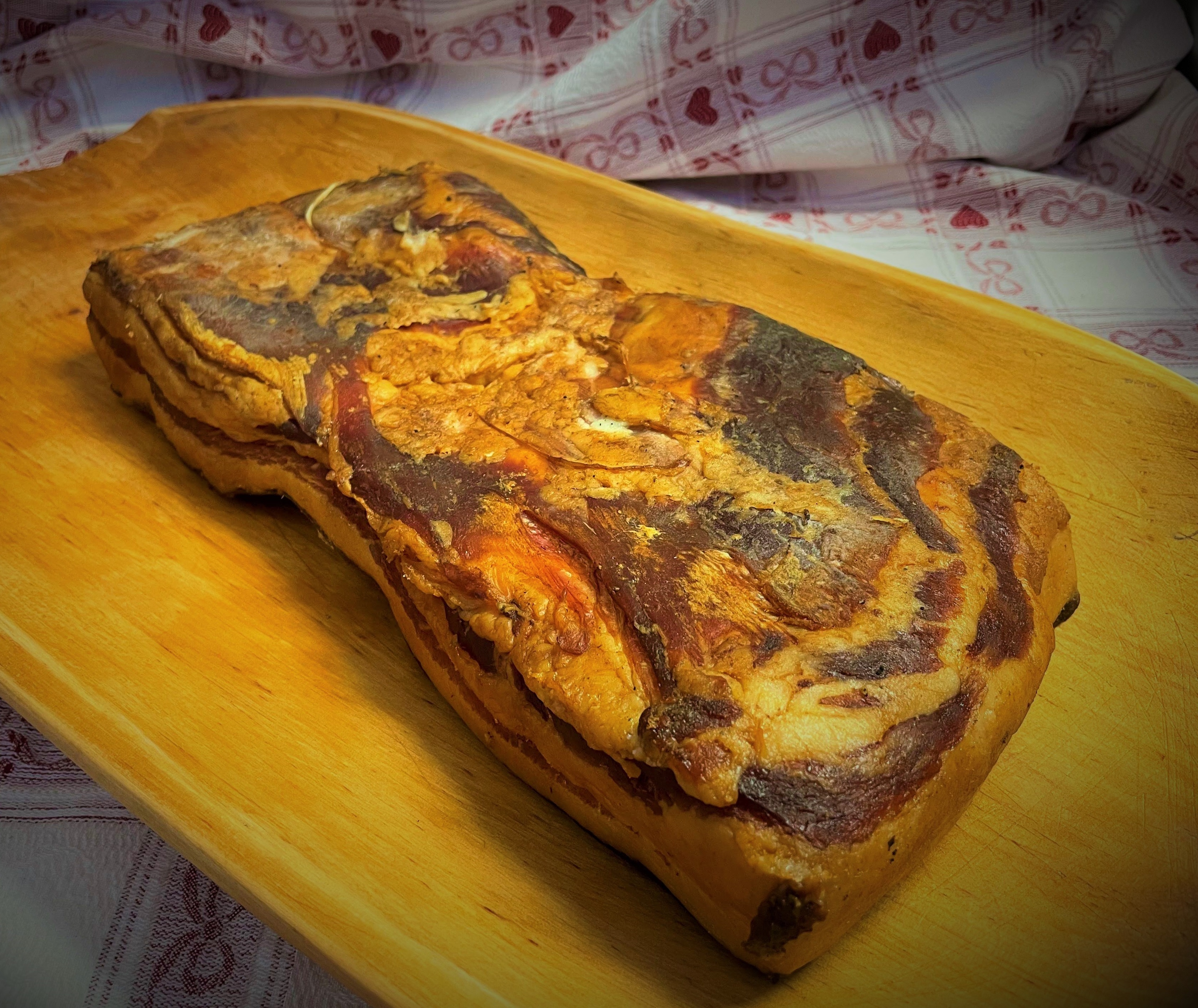 Mangalica hasaszalonna Finom, omlós, lágy husos szalonna, amely elolvad az ember szájában. A mangalica a Magyarországon őshonos háziállatok egyike, világhírű sertésfajta. Hagyományos módszerrel készül: A friss húst három hétre sóra tesszük, és utána száraz fűrészporral/forgáccsal három napig füstön tartjuk. Így nyeri el végső ízét, és tartósságát. Saját magunk tenyésztjük a sertéseket Dunaföldváron, és mi termeljük meg a takarmányt is Dunaföldvár határában. Igyekszünk, hogy minél kisebb ökológiai lábnyommal kerüljenek a termékeink, a fogyasztók asztalára. A csomagolásnál nem lehetséges pontos kg-ot porciózni, ezért az átvételkor előfordulhatnak minimális eltérések a rendelt mennyiséghez képest.