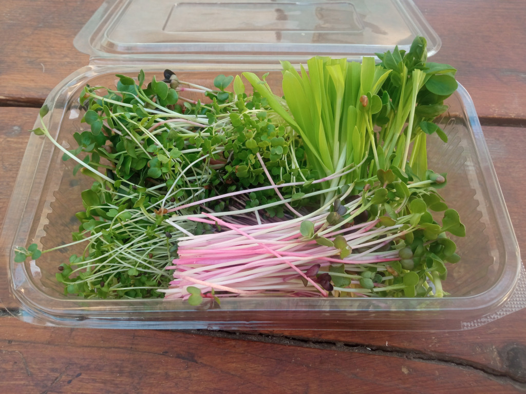Mikrozöldmix 50g 50g Milrozöld mix Változó arányban tartalmazhat: -retek -borsó -napraforgó -kukorica -rukkola -brokkoli -vörös káposzta Mikrozöldek kezeletlen magból előállított frissen szedett vitamin bomba. Előállításához semmilyen vegyszer nincs használva.