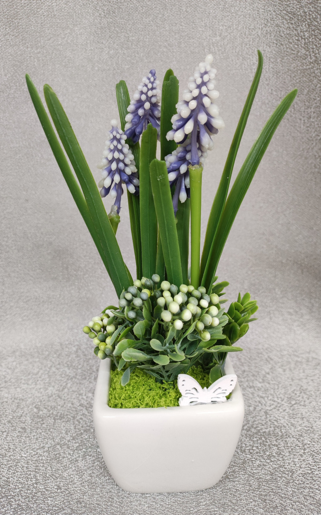 Fehér kerámiakaspóban, lila gyöngyike. Gondozás mentes. Mérete: kb. 30-33 cm. Születésnapra, névnapra, Nőnapra, Anyák napjára vagy csak úgy, az otthonod díszeként!