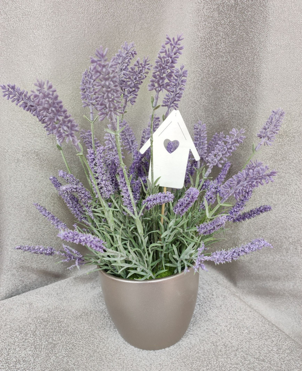Levendula kompozíció: Nagy kedvencem a levendula: imádom az ízét, az illatát, a kinézetét, a gyógyhatásait. Gyönyörű, (csodaszép élőben) gondozás mentes levendulás dísz Ezüst kerámia kaspóban Kb. 40 cm magas Csodaszép ajándék születésnapra, névnapra, Pedagógusnapra, Anyák napjára, Nőnapra vagy csak úgy, ha imádod a levendulát!