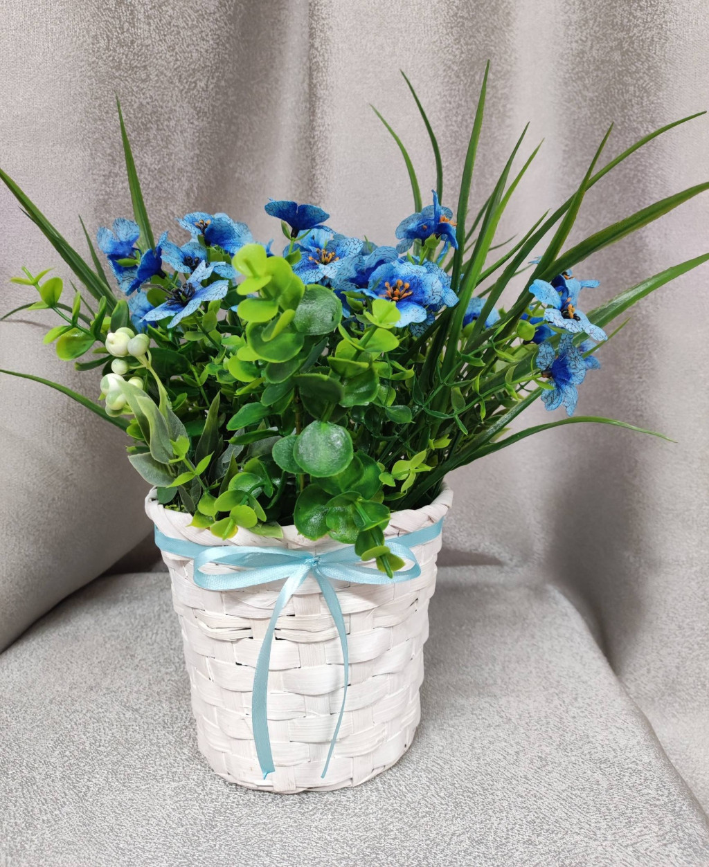 kék Angyalfüzér Nőnapi ajándék, ami nem hervad el – csak melegséget hoz mindennapokba Ez a kék Angyalfüzér egy bájos, kézzel készített virágkompozíció, amely természetes bambusz kaspóban található, és azonnal otthonossá varázsolja bármelyik teret. 16 cm-es bambusz kaspóban kb. 30-35 cm magas időtálló szépség – nincs locsolás, csak gyönyörködés Tökéletes választás, ha idén nem sablonos ajándékot szeretnél adni, hanem valami igazán személyeset és különlegeset. Születésnapra, névnapra: Párodnak Anyának, nagyinak (Anyák napjára) Saját magadnak (mert megérdemled)