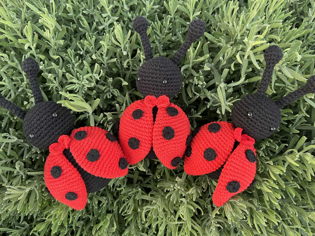 Szárított orvosi levendulával töltött horgolt katica. A termék 3 éves kor alatt gondos odafigyelés mellett használható!