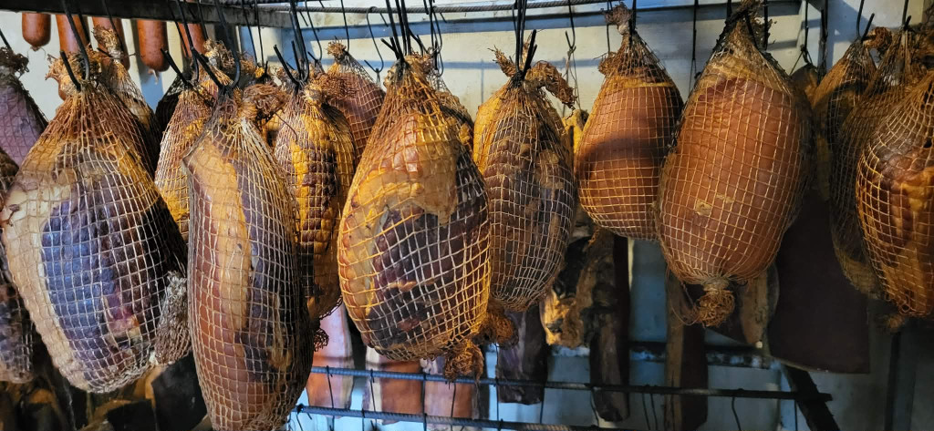 Húsvéti Kötözött Sonka A sertés combjának közepe, kicsontozva, hálóba húzva sózva, füstölve, érlelve. Hagyományos módszerrel készül: A friss húst három hétre sóra tesszük, és utána száraz fűrészporral/forgáccsal három napig füstön tartjuk. Így nyeri el végső ízét, és tartósságát. Egy sonka súlya kb.: 0,8 - 1,2 kg Saját magunk tenyésztjük a sertéseket Dunaföldváron, és mi termeljük meg a takarmányt is Dunaföldvár határában. Igyekszünk, hogy minél kisebb ökológiai lábnyommal kerüljenek a termékeink, a fogyasztók asztalára. A csomagolásnál nem lehetséges pontos kg-ot porciózni, ezért az átvételkor előfordulhatnak minimális eltérések a rendelt mennyiséghez képest.