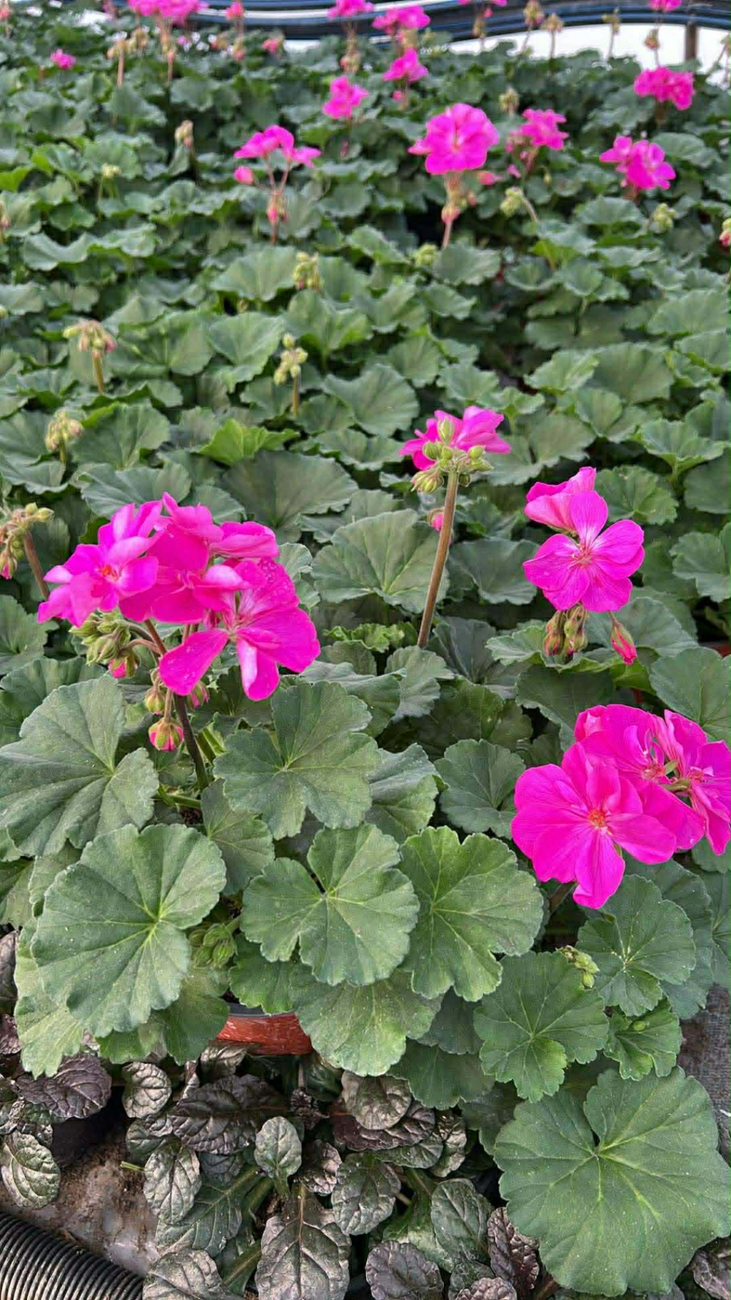 Álló muskátlik lila, barackrózsaszín, fehér és málna piros színekben.