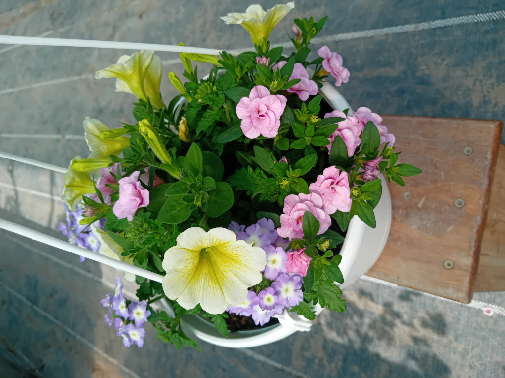 Szépen kombinálható például: Petunia, Pelargonium, Tagetes.