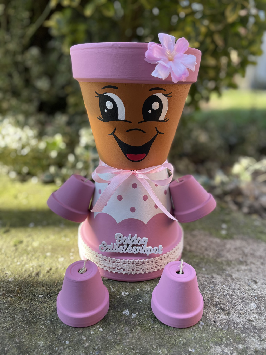 Kedves Vásárlók! Dombi Evelin vagyok, 24 éves, és közgazdászként pénzügyi területen dolgozom a mindennapokban. Gyermekkorom óta vonz az alkotás, a művészet, így a főállásom mellett a kreativitásomat egyedi, kézműves cserépbabák készítésében élem ki. Immár 5 éve készítem cserép dekorációimat, amelyeket főként online, illetve kézműves- és termelői piacokon értékesítek. A termékeimet agyagcseréppel, illetve akrilfestékkel készítem olyan módon, hogy helyt álljon az időjárással szemben is. A vidám cserép figurák minden nap mosolyt csalhatnak az arcunkra, amely akár tökéletes választás lehet ajándéknak is, egy beleültetett virággal.