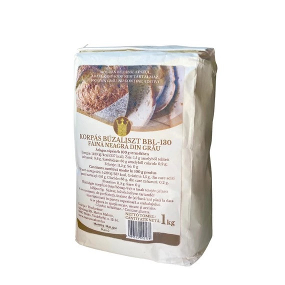 Maros Malom BBL130 Korpás búzaliszt, mely megőrzi a korpa értékes rostjait és tápanyagait. A korpás búzaliszt (mely a finomliszthez képest magasabb rosttartalmú, a búzaszem külső héját is tartalmazza) számos pozitív hatással bír a szervezetre, különösen az emésztésre és a hosszú távú egészségmegőrzésre. A korpás búzaliszt élettani hatásai: Javítja az emésztést és segít a székrekedés kezelésében: A búzakorpa magas rosttartalma (különösen az oldhatatlan rostok) növeli a széklet tömegét és gyorsítja a béltranzit időt, így hatékony a székrekedés, az aranyér és a kapcsolódó emésztési panaszok megelőzésében és kezelésében. Segíti a fogyást és a súlykontrollt: Magasabb rosttartalma miatt lassabban szívódik fel, ami hosszabb teltségérzetet biztosít, ezáltal csökkenti az éhségérzetet és segíti a súlycsökkentő diétát. Stabilizálja a vércukorszintet: Lassú szénhidrátfelszívódást eredményez, így kevésbé emeli meg hirtelen a vércukorszintet, mint a finomliszt, ami előnyös a cukorbetegek vagy inzulinrezisztenciával küzdők számára. Támogatja a bélrendszer egészségét: A rostok táplálják a bélflórát, ami hozzájárul az immunrendszer erősítéséhez. Csökkentheti a koleszterinszintet: A rostok megkötik az epesavakat, aminek hatására a szervezet kénytelen a koleszterint felhasználni újak előállítására, ezzel csökkentve a káros koleszterin szintjét. A korpás búzalisztet leggyakrabban pékáruk és sós sütemények készítéséhez használják, de sűrítésre és panírozásra is alkalmas. Mivel a korpa több folyadékot vesz fel, érdemes a receptekben finomliszttel keverni (például 20-30% arányban).  Sütéshez A korpás liszt textúrát és karakteres, enyhén diós ízt ad a tésztáknak: Kenyérfélék és zsemlék: Kiváló alapja házi kenyereknek, buciknak. Lehet dúsítani magvakkal (szezámmag, lenmag), hogy fokozzák az egészséges hatást. Sós aprósütemények: Nagyon népszerű a pogácsa, stangli vagy sós keksz alapanyagaként. Édes sütemények: Muffinok, palacsinták vagy teljes kiőrlésű jellegű kevert tészták készítésekor is helyettesíthetjük vele a fehér liszt egy részét a rosttartalom növelése érdekében.  Főzéshez és előkészítéshez Sűrítés: Használható főzelékek, levesek rántásához vagy habarásához, ami tartalmasabbá és egészségesebbé teszi az ételt. Panírozás: A zsemlemorzsához keverve vagy önmagában is használható húsok, zöldségek bundázásához, így ropogósabb kérget kapunk. Kásák és töltelékek: A tiszta búzakorpát (ami a korpás liszt alapja) joghurtba, kefirbe keverve reggeliként, vagy fasírtok, töltelékek lazítására is használják.  Tipp a legjobb eredményhez: Ha kelt tésztát készítünk belőle, hagyjunk több időt a kelesztésre, és figyeljünk rá, hogy a korpa miatt a tészta valamivel több vizet vagy tejet igényelhet, mint a sima fehér lisztes változatok.