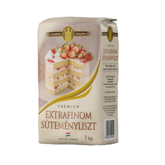 Maros Malon Extrafinom süteményliszt. A kíméletes félmagas őrlési technológiának köszönhetően jobb használhatóságot tesz lehetővé a családi konyhában, akár kalácsot, piskótát vagy galuskát készítünk belőle.