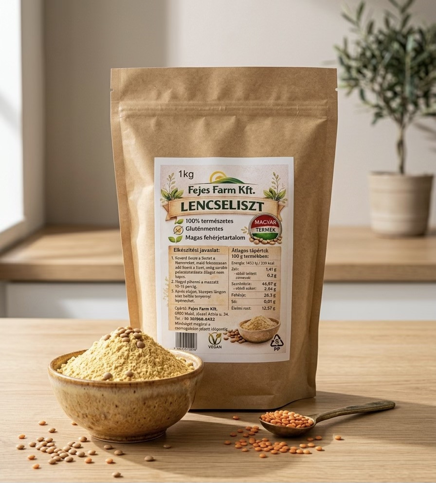 A lencseliszt kiváló tápanyagforrás, amely egyre népszerűbb az egészségtudatos és gluténmentes étrendben. Gazdag növényi fehérjékben, élelmi rostokban, valamint vasban és magnéziumban, miközben alacsony a zsírtartalma.  A lencseliszt fogyasztásának előnyei és jellemzői: Gluténmentes: Kiváló alternatíva lisztérzékenyeknek, de önmagában nem képez sikérvázat, ezért gyakran keverik más lisztekkel vagy tojással a tészta szerkezetének megtartása érdekében. Magas rosttartalom: Segíti az emésztést és hozzájárul a napi rostszükséglet fedezéséhez. Diétás és laktató: Fehérje- és rosttartalma révén hosszan tartó teltségérzetet biztosít, így fogyókúrázóknak is ajánlott. Alacsony glikémiás index: Lassan felszívódó szénhidrátokat tartalmaz, így nem emeli meg hirtelen a vércukorszintet, ami cukorbetegek számára is kedvező.  Felhasználása: A lencseliszt rendkívül sokoldalúan használható: Sütés: Készíthető belőle lencsekenyér, zsemle (például zsemle), pogácsa, sós sütemények. Főzés: Krémlevesek sűrítésére, palacsintatésztába, vegán quiche-be, fasírtokhoz. Keverés: Sütéskor érdemes más gluténmentes lisztekkel (pl. rizsliszt, kölesliszt) keverni a jobb textúra érdekében.