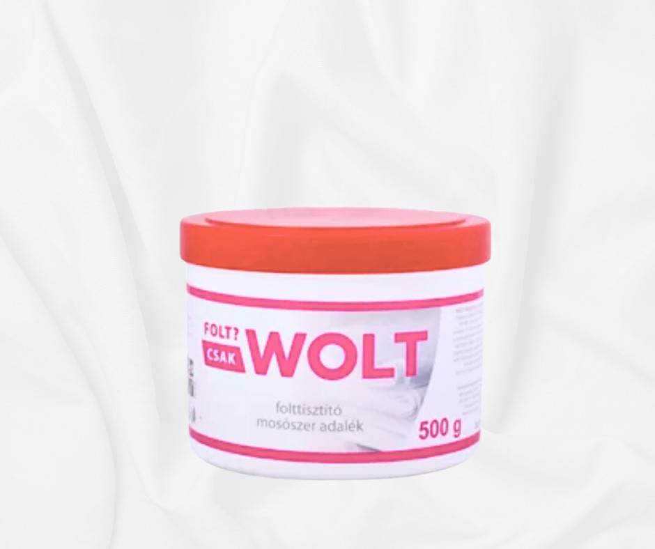 A Wolt folttisztító adalék por alapú folttisztító, amelyet akár a mosóporhoz adagolva, akár előáztatásra használhatunk. A termék adagolása egyszerű és gazdaságos, egy evőkanállal a mosóporhoz adagolva megnöveli a mosópor mosási hatékonyságát. Sok mosóport spórolhatunk meg, ha a nagyon szennyezett ruhát előáztatjuk. Gyártó: Cudy Future Kft Nyíregyháza
