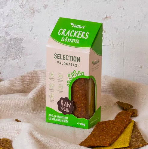 A NaTuri élő kenyerek egyedülállóan 70-90% zöldségpépből, többféle lenmag keverékéből készítjük és emésztést segítő fűszerekkel ízesítjük. A hagyományos kenyerekhez képest nem tartalmaznak sem lisztet, sem élesztőt, és nem sütéssel készülnek, hanem kíméletes aszalással. Cukkinis, olaszos és zöldséges ízváltozatot tartalmazó válogatás. Kíméletes aszalással 8-10 óra alatt készülnek el a ropogósra aszalt lapok, így tartósítószer nélkül el lehet őket tartani. Tele van rostokkal, és tápértékben gazdag. Az Élő Kenyér kiváló kiegészítője egy salátának, levesnek is, illetve a formája miatt nap közbeni tízórai, uzsonnára is alkalmas akár iskolában, munkahelyen, vagy útközben fogyasztva. Glutén-, cukor-, tej-, tojás-, szójamentes termék Összetevők: sárgarépa, kápia paprika, paradicsom, cukkini, alma, zeller, lenmag, lilahagyma, fokhagyma, mazsola, citrom, bazsalikom, oregánó, őrölt kömény, koriander, gluténmentes sörélesztő pehely, kurkuma, só Tömeg: 100g  Átlagos tápérték: Energi: 1768 kJ / 426 kcal Zsír: 27,7 g , - amelyből telített zsírsavak: 2,6 g,  Szénhidrát: 11,3 g, - amelyből cukrok: 3,3 g Rost: 14,6 g Fehérje: 19,3 g Só: 0,4 g