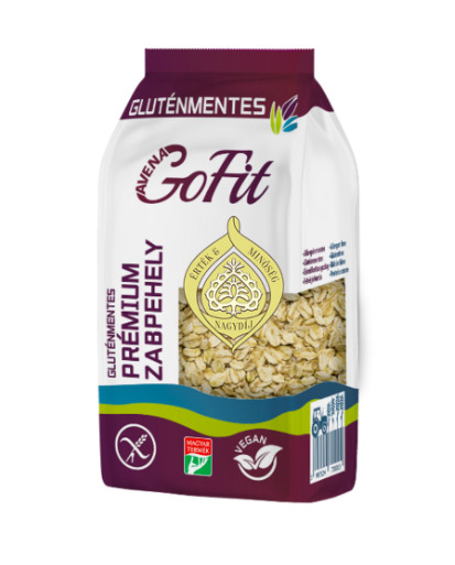 Fogyasztható müzliként tejben és joghurtban elkeverve.  Friss, illetve aszalt gyümölcsökkel és különféle magokkal keverve ízletes. Panírban felhasználva extra ropogós bundát készíthetünk. Kekszek sütésénél ropogós kérget képez, kevésbé morzsálódik. Sós és édes sütemények készítésénél is könnyedén alkalmazható. Zöldségekkel, húsokkal is jól variálható. Gluténmentes, hántolt és tisztított egész zabszemekből készül a natúr prémium zabpelyh. A prémium termék különlegesen ropogós, nagy szemű pelyhekből áll. Termékeink - a vetőmag földbe juttatásától, saját termesztésen és a gyártási folyamaton keresztül a csomagolásig - szigorúan ellenőrzött körülmények között készülnek. A keresztszennyeződések megakadályozására speciális technológiát alkalmazunk. Az alapanyagot és a késztermékeket saját és külső akkreditált laboratóriumban folyamatosan vizsgáljuk és ellenőrizzük.  TÁPANYAGTARTALOM: Energia : 1393 kJ / 331 kcal Zsír: 7,2 g - amelyből telített 1,4 g, Szénhidrát: 53,8g - amelyből cukor 0,7g, Fehérje? 13,1 g, Rost? 10 g, Só: 0,01g Tárolási útmutató: száraz, hűvös helyen tartandó. Minőség megőrzési idő: a gyártástól számított 12 hónap. Gyártó:  GOF Hungary Kft. - Nyíregyháza 100%-ban Magyarországon termesztett.  GLUTÉNMENTES ZABFELDOLGOZÓ ÜZEM