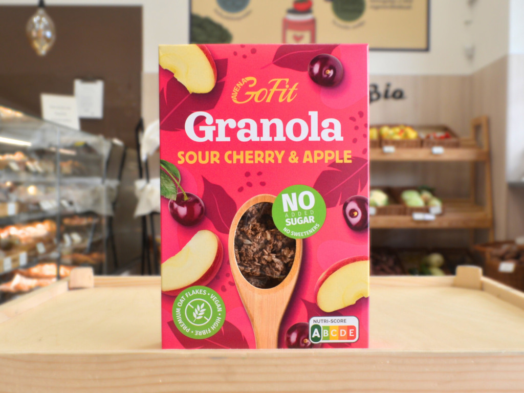 Frissítően gyümölcsös granola, amelyben az alma enyhe édessége és a meggy üdítő savanykássága alkot harmonikus párost. Hozzáadott cukor és édesítőszer nélkül, kizárólag természetes összetevőkkel készült, hogy egészséges és ízletes választás legyen a mindennapokra. Elkészítési javaslat: tejjel, joghurttal, smoothie feltétként, de önmagában is fogyasztható.  ENERGIA KJ1455. Kcal: 346 ZSÍR:10,7,  TELÍTETT ZSÍR: 1,7g, SZÉNHIDRÁT: 46,7g - CUKOR: 12,2g, FEHÉRJE : 15,5g,  ROST:  11,2 g,  SÓ: 0,28 g Gyártó:  GOF Hungary Kft. - Nyíregyháza     GLUTÉNMENTES ZABFELDOLGOZÓ ÜZEM