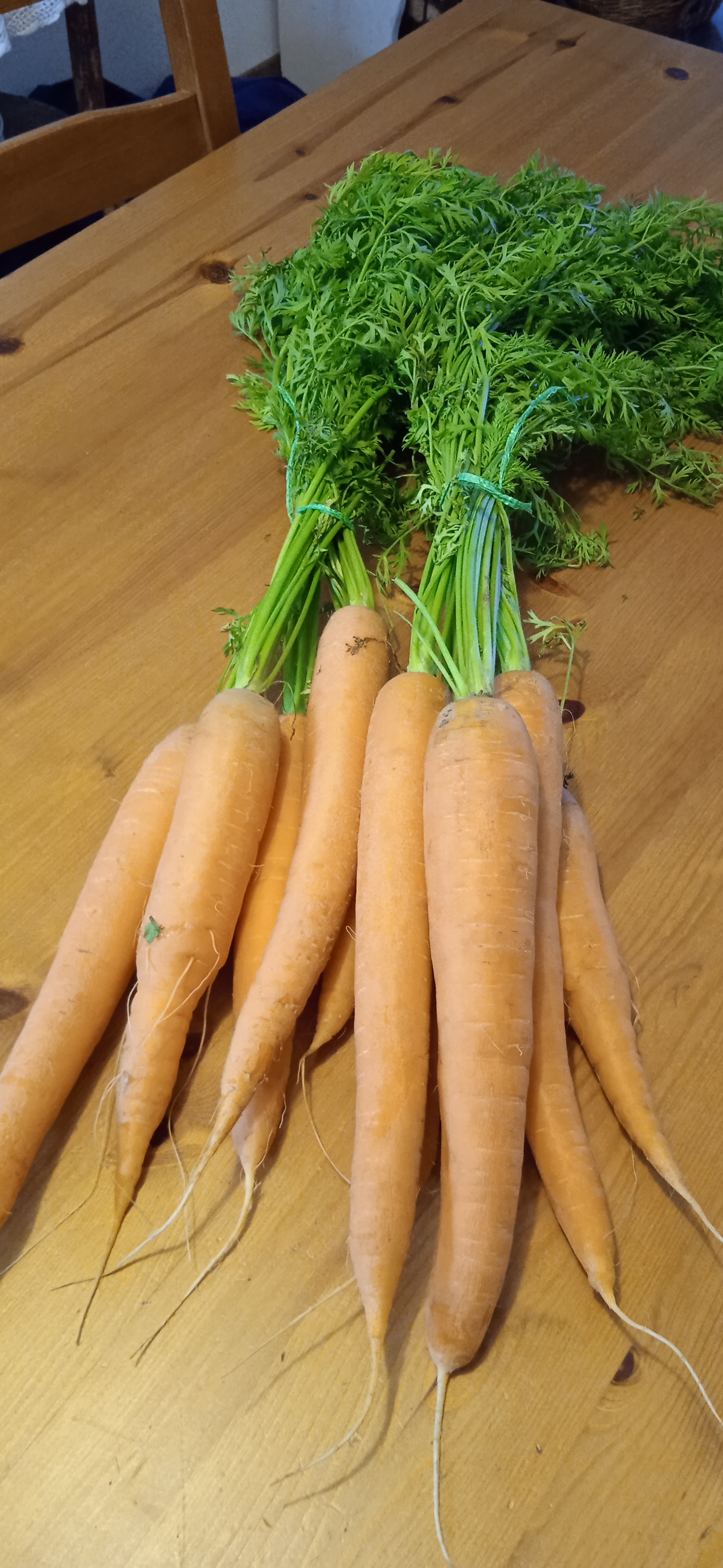 Frissen szedett új sárgarépa csomóban. Minden csomóban 5db van.