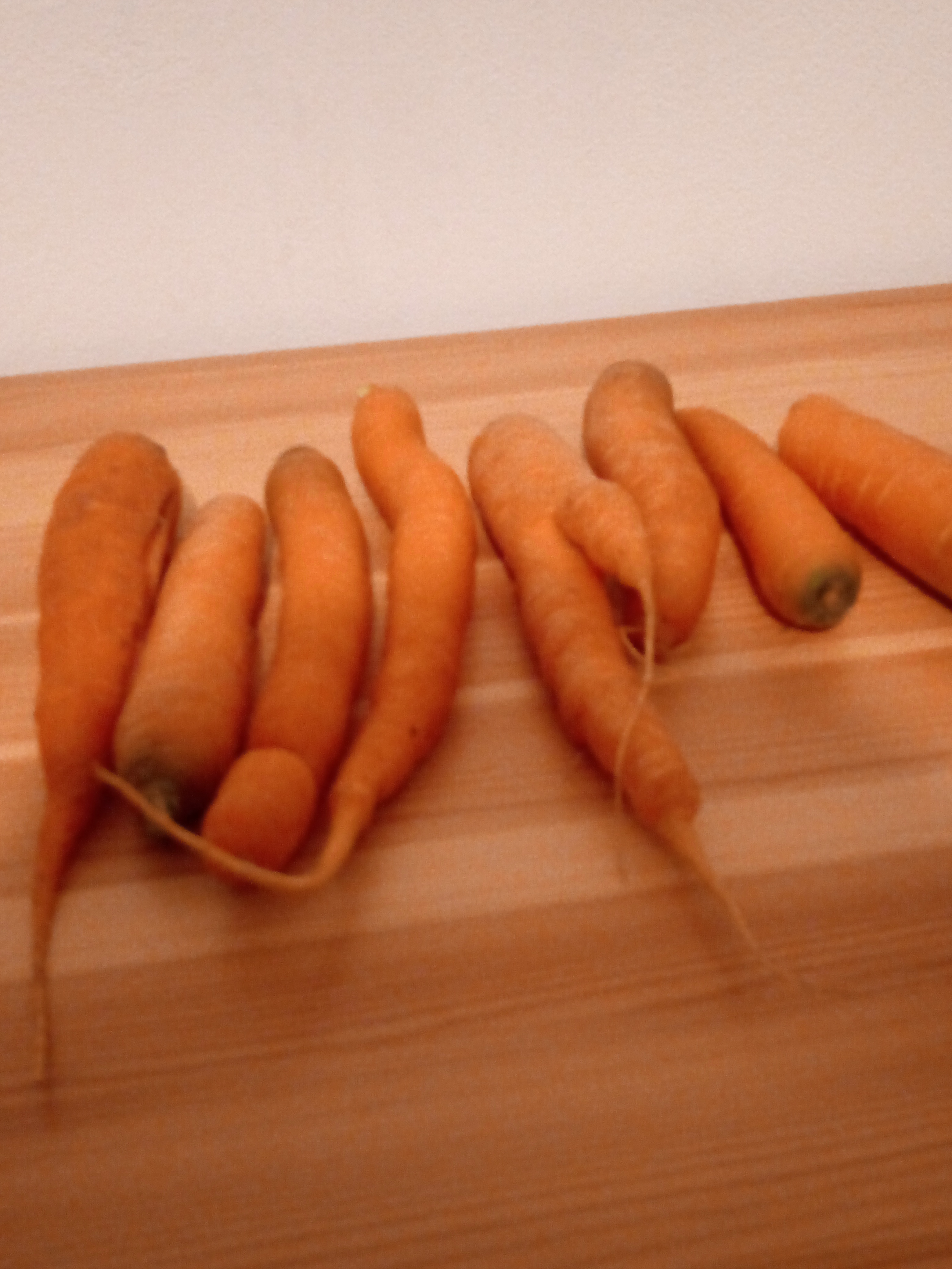 A másodosztályú sárgarépa görbébb, kicsit göcsörtösebb és néhol elágazó az első osztályú sárgarépához képest. egy kg/ csomag